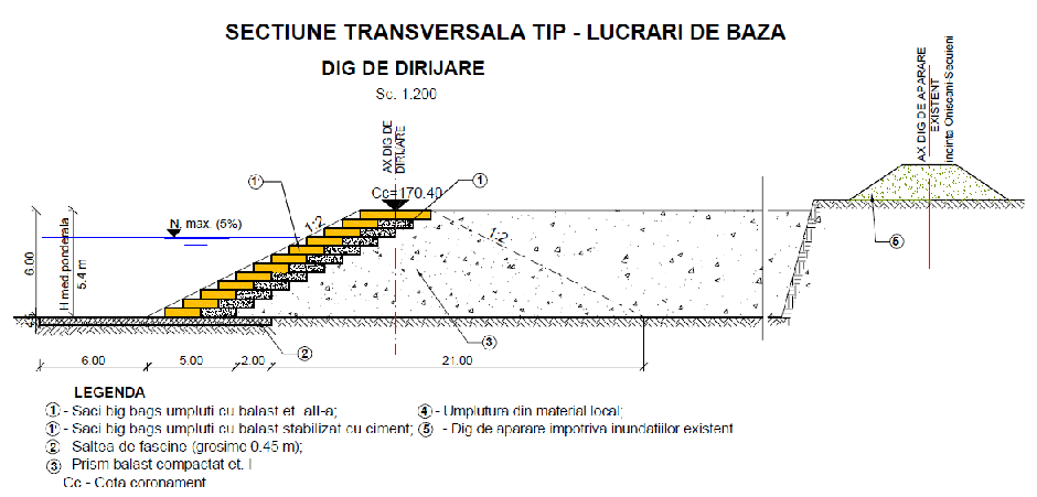In vederea atenuării evoluţiei eroziunii active a malului drept al râului Siret în zona menţionată şi refacerea în timp a zonei limită dig-mal s-au proiectat următoarele lucrări principale: