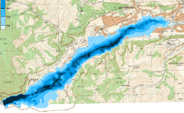 ■ pe baza datelor topografice s-a alcãtuit modelul geometric al albiei în aval de baraj şi s-au tranzitat prin ea undele de viiturã în caz de accident;